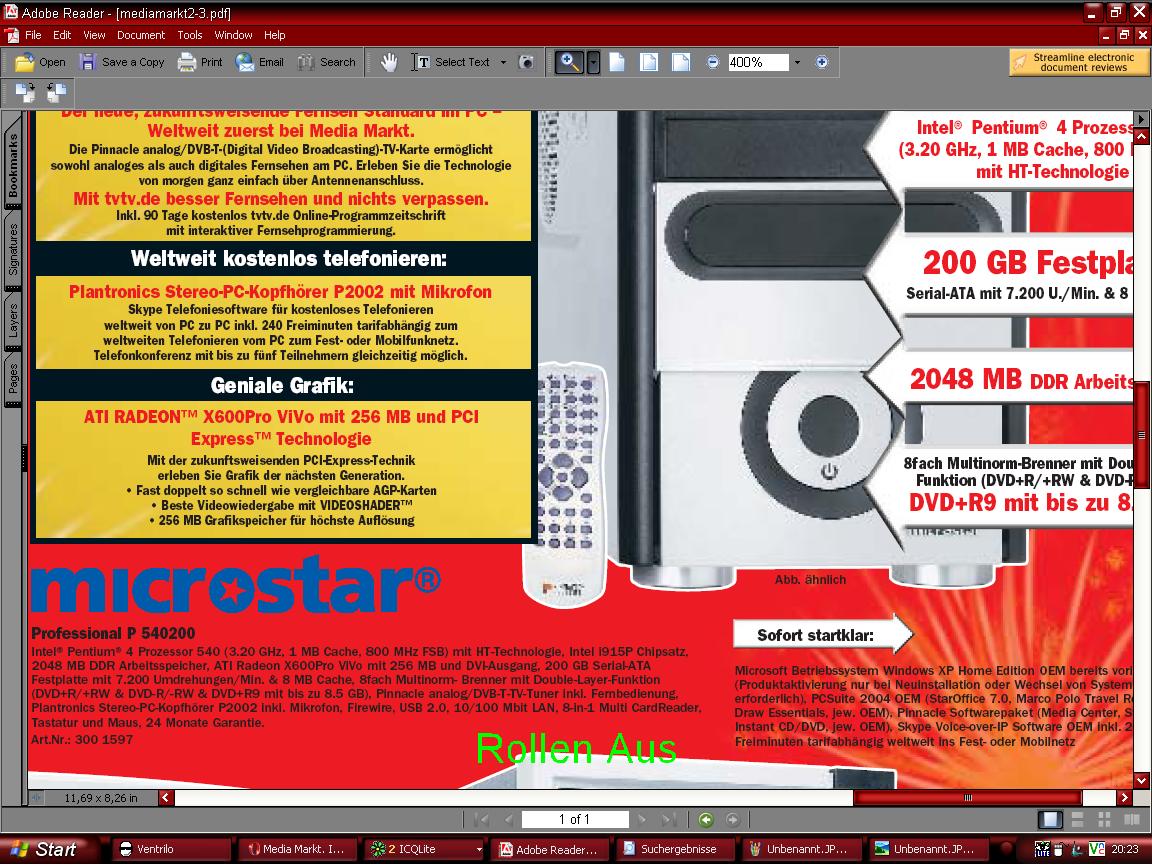 Also folgendes, ich habe vor mir in näherer Zukunft einen neuen Rechner zu kaufen. Ich hab da ca. mit 1000€ gerechnet. Eigentlich wollte ich bis zum nächsten Aldi PC warten, weil ich bis jetzt immer zufrieden mit diesen Rechnern war. Aber ich habe jetzt in der Mediamarkt werbung einen Rechner für 1200€ gesehen der mich interessieren könnte. Es sollte gesagt sein, ich will schon einen wirklich guten, neuen PC. Ich weiß jetzt nicht, ob ich auf den Aldi PC warten soll, oder mir diesen zulegen soll. Nämlich mir sagt die Firma "Microstar", von dem der PC zusammegestellt wurde leider nüschts. Mit "Medion" war ich einfach ends zurfrieden, aber mein jetziger reicht einfach nicht mehr aus.