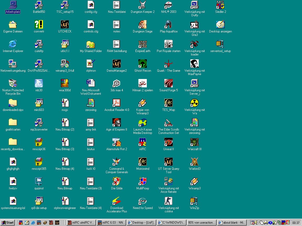 ne das wär nix für mich. ich bevorzuge doch eher den alten WIN98 typischen desktop einfach und gut ... bei meinem bild sieht man den hellihkeits fehler den ich immer habe wenn ich UT2k3 beende )
