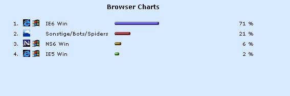 Habe mir eben mal die Statistik angesehen und dabei ist mir aufgefallen, dass der Anteil der User im Forum, die den IE benutzen, doch zurückgegangen ist. Weiter so