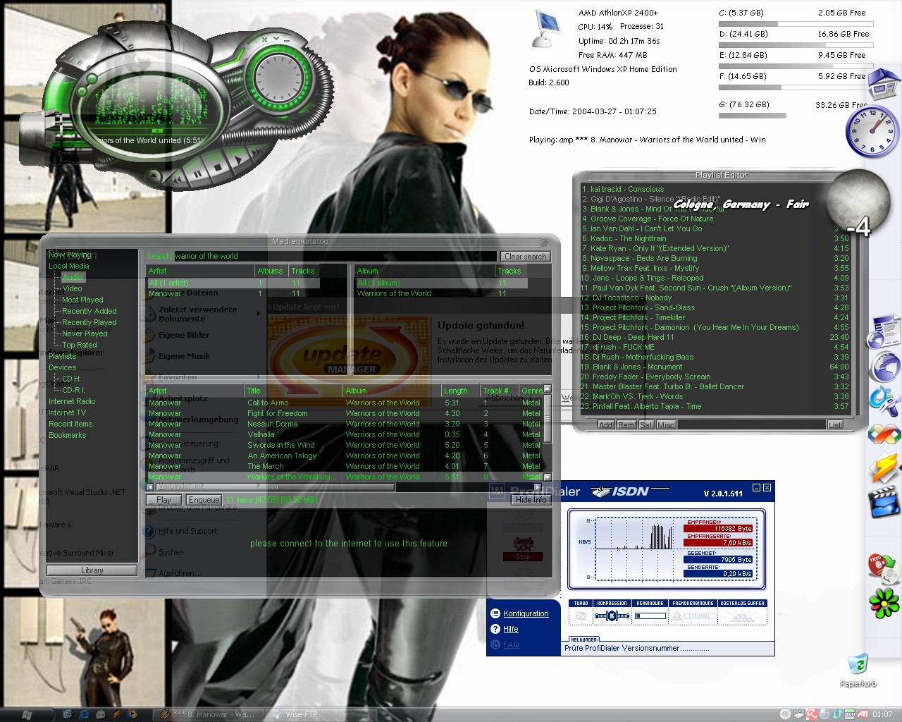 was mich n bissl stört, ist dass das ganze auf dem desktop ist. d.h. ich muss immer zurück aufden desktop um etwas davon zu haben. und wie oft sitzt man einfach so vor dem desktop und macht nix ausser musik hören und IM chatten? ich mach das glaub ich genau 5 sec. pro tag. die restliche zeit (es handelt sich um stunden) mach ich was am pc (zocken, irc, surfen, usw.).